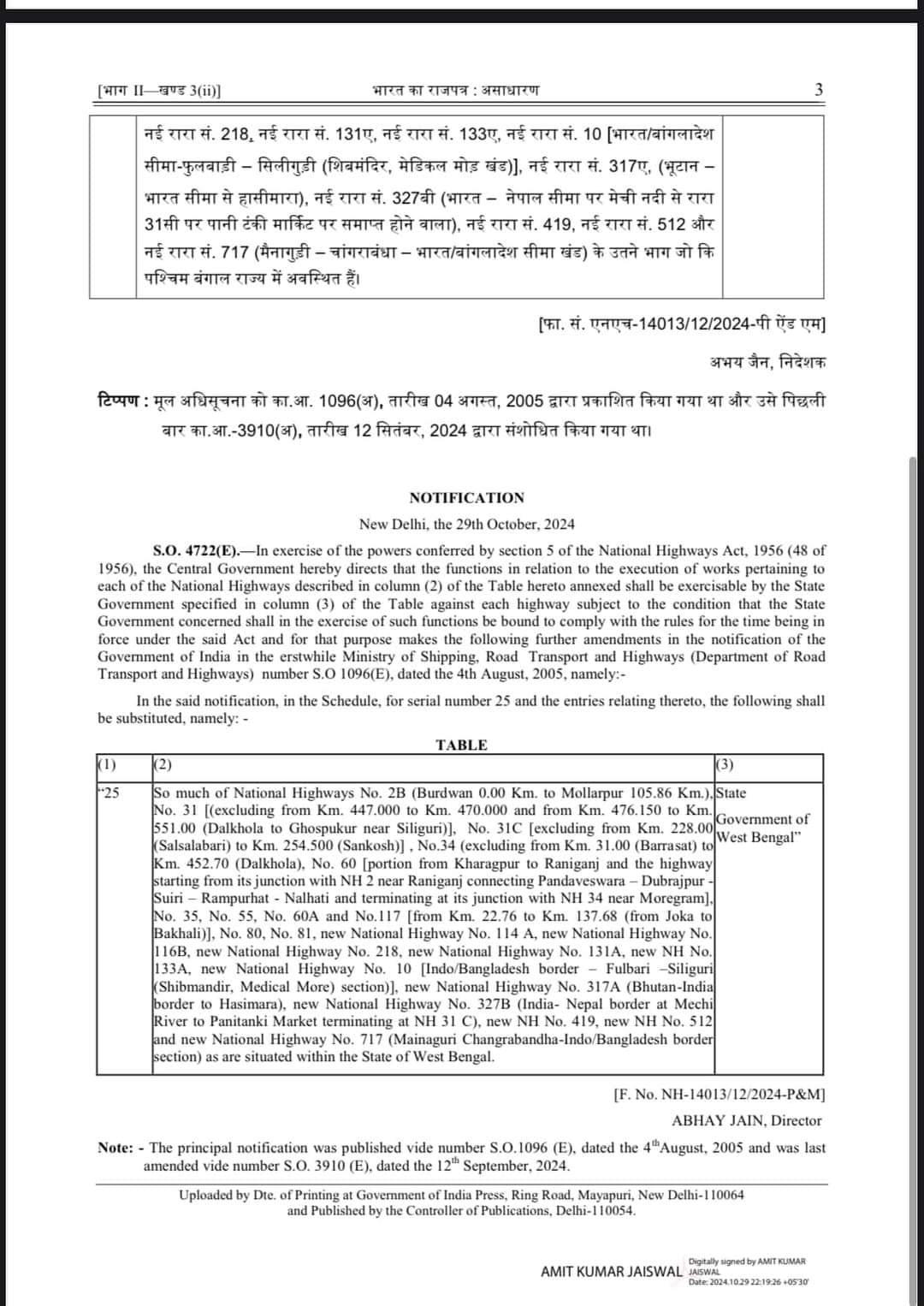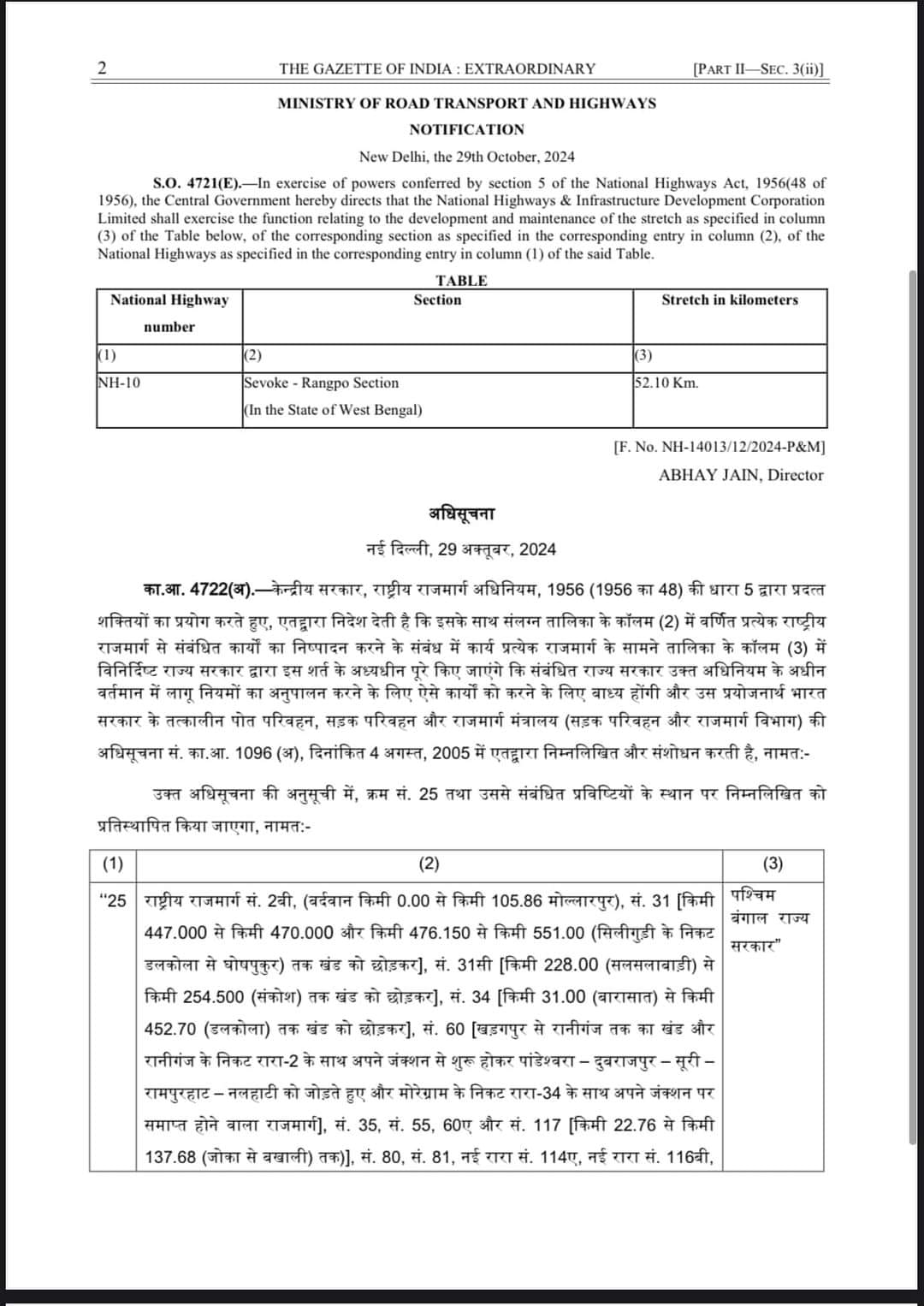 In a significant development for the Darjeeling and Sikkim regions, the 52.10 km Sevoke (West bengal) -Rangpo (Sikkim) section of National Highway 10 (NH-10) has been transferred to the National Highways and Infrastructure Development Corporation Ltd (NHIDCL). Darjeeling MP Raju Bista announced the news, noting that the handover came after persistent efforts, including numerous representations to the Minister of Road Transport and Highways, Nitin Gadkari.