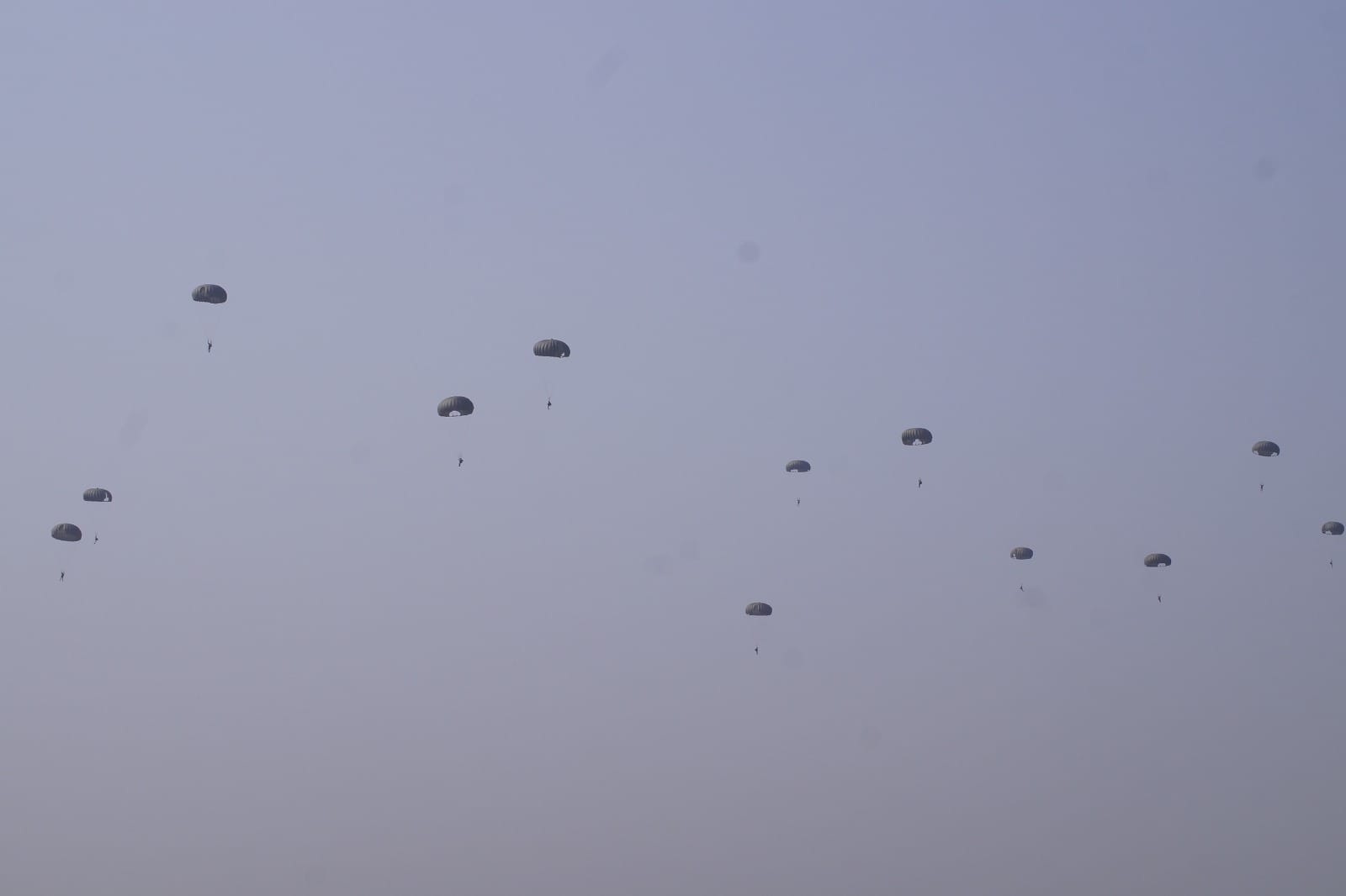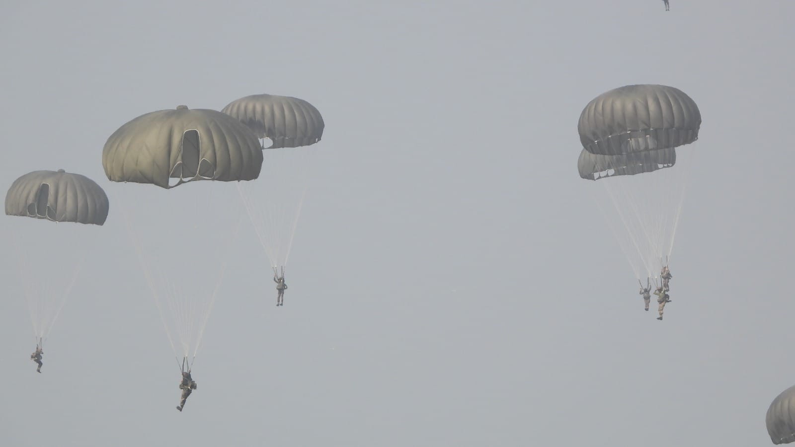 The exercise commenced with aerial induction of specialised troops to secure an air head in the designated enemy territory through Combat Free Fall (CFF). Thereafter, the main force inducted by Static Line Jumps. Heavy weapons & equipment was inducted by latest Guided Precision Aerial Delivery System (GPADS).
