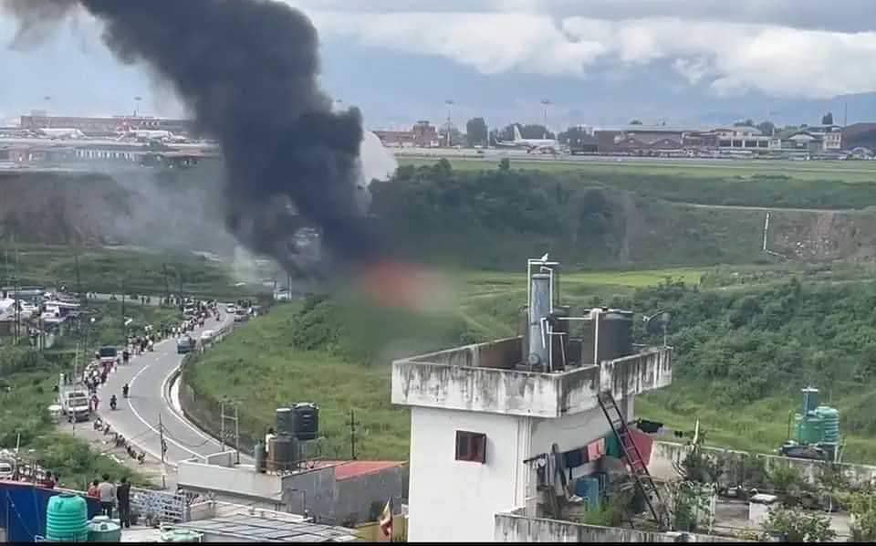 Minutes after the Pokhara-bound Saurya Aircraft carrying 19 people slipped off the runway and crashed while attempting to take off, visuals emerged from the site showing the moments when the accident occurred and the subsequent fireball. CCTV footage captured the exact moment of the crash, showing the plane smashing into the ground and smoke starting to rise around 11 am. Another video recorded the fall from behind a parked aircraft at Tribhuvan International Airport. The footage also shows residents from nearby rushing to assist rescue workers.