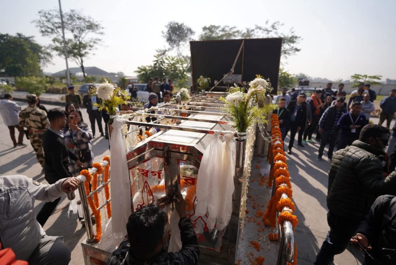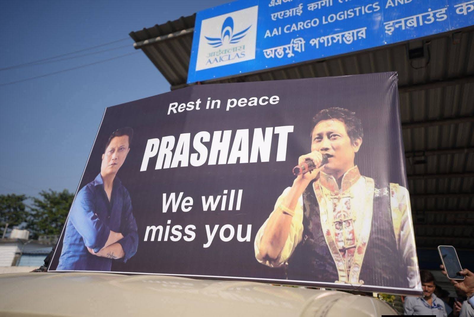 The mortal remains of late Prashant Tamang, the celebrated singer and iconic figure of the Nepali-Gorkha community, arrived at Bagdogra Airport at 9:02 AM on Monday.
